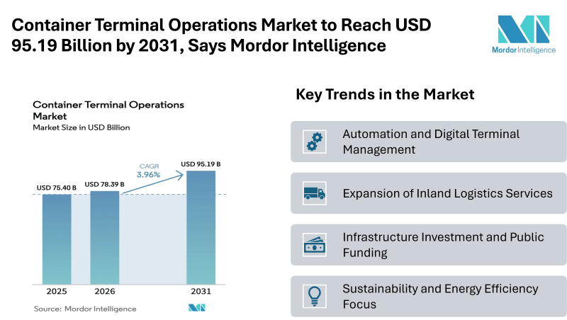 Home NEWSPRESS RELEASESContainer Terminal Operations Market to Reach USD 95.19 Billion by 2031, Says Mordor Intelligence